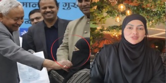 પટણામાં એક કાર્યક્રમમાં બિહારના મુખ્યમંત્રી નીતિશ કુમારે એક મુસ્લિમ ડોક્ટરને એવોર્ડ આપતી વખતે તેનો હિજાબ ખેંચી કાઢ્યો હોવાનો એક વીડિયો વિવાદમાં ફસાઈ ગયો છે. હવે, ભૂતપૂર્વ બોલિવૂડ અભિનેત્રી સના ખાને આ ઘટના પર પ્રતિક્રિયા આપી છે અને પોતાનો ગુસ્સો વ્યક્ત કર્યો છે. સનાએ તેની ઇન્સ્ટાગ્રામ સ્ટોરી પર એક વીડિયો શેર કર્યો છે, જેમાં નીતિશ કુમારના આ કૃત્યને શરમજનક ગણાવ્યું છે.