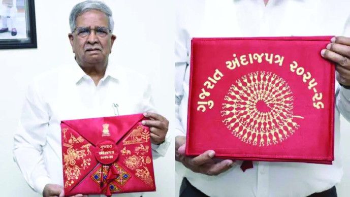 ગુજરાતના નાણાં મંત્રી કનુભાઈ દેસાઈ આજે વિધાનસભા ગૃહ ખાતે વર્ષ 2025-26 માટે રાજ્યનું અંદાજપત્ર રજૂ કરશે. વિધાનસભા ખાતે આવી પહોંચેલા નાણા મંત્રીશ્રીના હાથમાં રહેલી લાલ કલરની પોથીએ અનેરૂ આકર્ષણ જમાવ્યું હતું.