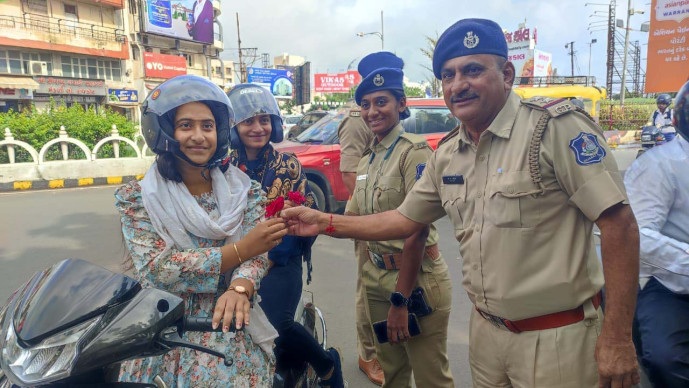 આજે તમામ પોલીસને સૂચના આપવામાં આવી છે કે, તમામ પોઇન્ટ પર પોલીસે હેલ્મેટ પહેરનાર લોકોના મોં મીઠા કરાવવાના રહશે. ઉપરાંત ટ્રાફિક પોલીસ ટ્રાફિક નિયમનની સાથે સાથે હેલ્મેટ ડ્રાઈવ તો યથાવત જ રાખશે.