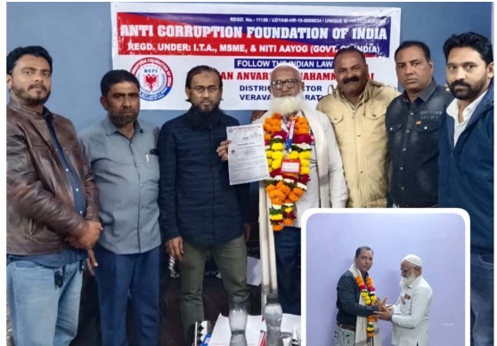 વેરાવળ સમસ્ત મુસ્લિમ સેવા સમાજના પૂર્વ પ્રમુખ અનવર ભાઈ ચોહાણ (પટેલ) ને એન્ટી કરપસન ફાઉન્ડેશન ઓફ ઇન્ડિયા ના ગીર સોમનાથ જિલ્લાના ડાયરેકટર પદે નિમણૂક થતા તેમનું તેમજ તસ્લીમ ભાઈ કાજી વેસ્ટર્ન રેલવે મજદૂર સંઘ વેરાવળ ના ચેરમેન તથા વેસ્ટર્ન રેલવે મજદૂર સંઘ ના ભાવનગર ડીવીઝનલના વાઇસ ચેરમેનના પદ ઉપર પણ નિમણૂક થતા બન્નેનું સામાજિક અગ્રણીઓ તેમજ મિત્રો દ્વારા સાલ ઓઢાડી ફૂલહાર થી સ્વાગત કરવામાં આવેલ હતું