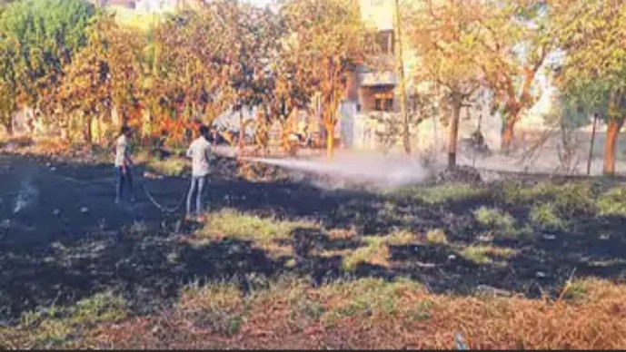 જેમાં 80 ફૂટ રોડ તરફ જતા ઘર હો તો ઐસા ખુલ્લા પ્લોટમાં બવાળોની કાંટમાં અચાનક આગ લાગી હતી. કચરામાં ધીમેધીમે આગ પ્રસરતા જોતજોતામાં આગ મોટુ સ્વરૂપ ધારણ કરવા લાગતા કાળા ડિંબાંગ ધુમાડાથી ઘેરાઇ ગયું હતું.