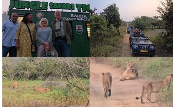 વિદેશી પ્રવાસીઓ, ખાસ કરીને અમેરિકાથી આવેલા એક પરિવારે સાહસિક સફારી દરમિયાન મેળવેલો અદભુત અનુભવ એક એવો અનુભવ હતો જે સામાન્ય પ્રવાસીઓને ભાગ્યે જ પ્રાપ્ત થાય છે. સફારી દરમિયાન તેમને એક કે બે નહીં પરંતુ એકસાથે ૧૧ સિંહોના કુટુંબને નિહાળવાનો સુવર્ણ મોકો મળ્યો હતો.  કુદરતી સૌંદર્ય વચ્ચે ‘જંગલના રાજા’ને પોતાના પરિવાર સાથે નિર્ભય રીતે ફરતો જોઈ પ્રવાસીઓ મંત્રમુગ્ધ બની ગયા હતા. ત્રણથી ચાર સિંહણો, નર સિંહો અને નાના બચ્ચાઓ સાથે થોડાં- થોડાં અંતરે ચાલતા સિંહ કુટુંબને જોઈ તેઓ અચંબિત થઈ ગયા હતા.બરડા સફારીમાં પ્રવાસીઓનો ખાસ ઘસારો જોવા મળ્યો હતો. સ્થાનિક તેમજ વિદેશી યાત્રીઓ સિંહોના દર્શન કરવા માટે આતુરતાથી રાહ જોઈ રહ્યા હતા અને મોટાભાગના પ્રવાસીઓને આકર્ષક દર્શન મળતા ખુશી છલકાઈ રહી હતી. સિંહોની સંખ્યા વધતા આ વિસ્તાર સફારી માટે વધુ લોકપ્રિય બની રહ્યો છે. અમેરિકન ફેમિલીએ સફારી પૂર્ણ કર્યા બાદ ગાઈડ તથા સફારી ડ્રાઇવરના વખાણ કર્યા હતા. જંગલ વિશેની વિગતવાર માહિતી, સિંહોને સુરક્ષિત અંતરથી દેખાડવાની કુશળતા અને સફારીનું સંચાલન – આ દરેક બાબતની નોંધ લેવામાં આવી હતી.