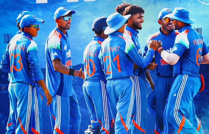 આયુષ મ્હાત્રેની આગેવાનીમાં ભારતીય ટીમ હવે ફાઈનલ મુકાબલામાં પ્રતિસ્પર્ધી પાકિસ્તાનનો સામનો કરશે. ફાઈનલ 21 ડિસેમ્બર (રવિવાર)ને દુબઈના આઈસીસી એકેડમી ગ્રાઉન્ડમાં જ રમાશે. જણાવી દઈએ કે, પાકિસ્તાને બીજી સેમીફાઈનલમાં બાંગ્લાદેશને 8 વિકેટથી હરાવ્યું.ચેજમાં ભારતીય ટીમની શરૂઆત સારી ન રહી. કેપ્ટન આયુષ મ્હાત્રે (7 રન) અને ઇનફોર્મ બેટર વૈભવ સૂર્યવંશી (9 રન) સારું પ્રદર્શન ન કરી શક્યા. બંને બેટરોને ફાસ્ટ બોલર રસિથ નિમસારાએ આઉટ કર્યા. 25 રનો પર 2 વિકેટ ગુમાવ્યા બાદ વિહાન મલ્હોત્રા અને એરોન જોર્જે ભારતે જીત મેળવી. જોર્જ 58 (49 બોલ, 4 ચોગ્ગા, 1 સિક્સર) અને મલ્હોત્રા 61 (45 બોલ, 4 ચોગ્ગા, 2 સિક્સર) પર અણનમ રહ્યા.