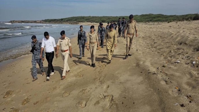ગીર સોમનાથ જિલ્લાની કોસ્ટલ સુરક્ષા વધારવા દરિયા કાંઠા વિસ્તારમાં ચેકીંગ સબબ ફૂટ પેટ્રોલિંગ ની કામગીરી હાથ ધરેલ છે. ગીર સોમનાથ જિલ્લો દરિયાઈ હદ ધરાવતો હોય અને દરિયાઈ વિસ્તાર માંથી કોઈ ગેરકાયદેસર પ્રવૃત્તિ ન થાય તે સારા કોસ્ટલ વિસ્તાર માં સઘન પેટ્રોલિંગ રાખવા તેમજ વિશેષ તકેદારી રાખવા નાયબ પોલીસ મહાનિરીક્ષક રાજેન્દ્રસિંહ ચુડાસમા, પોલીસ અધીક્ષક જયદીપસિંહ જાડેજા દ્વારા મળેલ સુચના અનુસંધાને મરીન કમાન્ડો ડી.વાય.એસ.પી. એસ.આર.શર્મા, સોમનાથ મરીન પોલીસ ઇન્સ્પેક્ટર એમ.જી.વસાવા, એસ.ઓ.જી. ઇન્ચાર્જ પોલીસ ઇન્સ્પેકટર ડી.એમ.કાગડા, પોલીસ સબ.ઇન્સ્પેક્ટર આર.એચ.સુવા ની રાહબરી હેઠળ એસ ઓ જી પોલીસ સ્ટાફ તથા મરીન કમાન્ડો ફોર્સ તથા સોમનાથ મરીન પોલીસ સ્ટાફે તા.17 ના કોસ્ટલ સુરક્ષા સુદ્રઢ કરવા સંયુક્ત રીતે હિરકોટ બંદર, કદવાર, જંગલ વિસ્તાર થી સુત્રાપાડા વિગેરે કોસ્ટલ વિસ્તાર માં ચેકિંગ સબબ સઘન ફૂટ પેટ્રોલિંગ કરી કોસ્ટલ સુરક્ષા લગતી કામગીરી કરેલ છે.