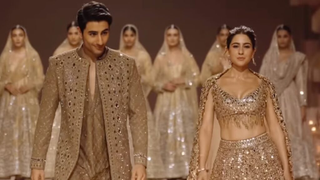 બોલીવુડ અભિનેત્રી સારા અલી ખાને પહેલી વાર તેના ભાઈ ઇબ્રાહિમ અલી ખાન સાથે રેમ્પ વોક કર્યું, જેના કારણે આ બે પ્રખ્યાત બી-ટાઉન સ્ટાર કિડ્સ સોશિયલ મીડિયા પર ચર્ચામાં આવ્યા. દિલ્હીના છતરપુરમાં સંસ્કૃતિ ગ્રીન્સના લીલાછમ બગીચાઓમાં ડિઝાઇનર અભિનવ મિશ્રા માટે સારા અને ઇબ્રાહિમ શોસ્ટોપર હતા, તેમની ડિઝાઇન ચમકી રહી હતી. ભાઈ-બહેનનો બંધન સ્પષ્ટ હતો. ઇબ્રાહિમ અલી ખાને કટાન સિલ્કથી બનેલી શાહી શેરવાની પહેરી હતી, જેમાં અરીસાઓ, સિલ્ક અને ઝરીથી જટિલ રીતે ભરતકામ કરવામાં આવ્યું હતું. સારા અલી ખાન પણ આવા જ ડિઝાઇનર લહેંગામાં જોવા મળી હતી.