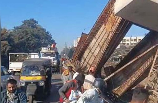 કૈલાશ રોડ ઉપર નિર્માણધીન બ્રિજની કામગીરી દરમિયાન આજે નવ વાગ્યાના અરસામાં બે પિલર વચ્ચેના ભાગે બ્રિજ બનાવવા બાંધેલી પાલણ અચાનક તૂટી પડતા કામ કરતા પાંચેક જેટલા શ્રમિકોને ઇજા પહોંચી છે. ઘટનાને પગલે ફાયર વિભાગ અને પોલીસ કાફલો ઘટનાસ્થળે પહોંચ્યો હતા.