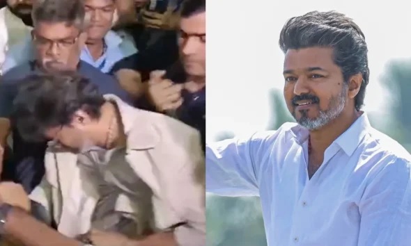 ચાહકોની ભારે ભીડ વચ્ચે, વિજય પોતાનું સંતુલન ગુમાવી બેઠો અને લપસી પડ્યો અને પડી ગયો. સદનસીબે, તેને કોઈ ઈજા થઈ ન હતી. તમિલગા વેત્રી કઝગમ (ટીવીકે) ના પ્રમુખ અને લોકપ્રિય અભિનેતા વિજય, રવિવારે રાત્રે મલેશિયામાં ફિલ્મ “જાન નાયકન” ના ઓડિયો લોન્ચ કાર્યક્રમમાં હાજરી આપ્યા પછી ચેન્નાઈ એરપોર્ટ પર પહોંચ્યા. જેમ જેમ તે એરપોર્ટના બહાર નીકળવાની નજીક પહોંચ્યો, તેમ તેમ મોટી સંખ્યામાં ચાહકો તેમની એક ઝલક જોવા માટે એકઠા થયા. ભીડ અચાનક બેકાબૂ બની ગઈ, જેના કારણે તેમની કાર પાસે થોડીવાર માટે હંગામો થયો. અંધાધૂંધી દરમિયાન, વિજય પોતાનું સંતુલન ગુમાવી બેઠો અને તેની કાર સુધી પહોંચતા પહેલા જ જમીન પર પડી ગયો.