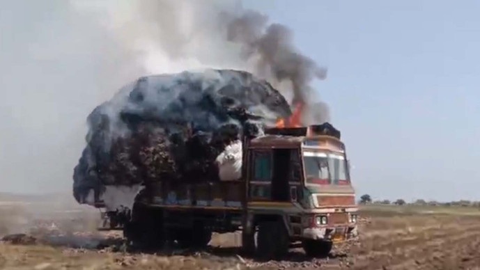 Amreliના લાઠી નજીક કપાસ ભરેલ ટ્રક ભડભડ સળગી ઉઠયો